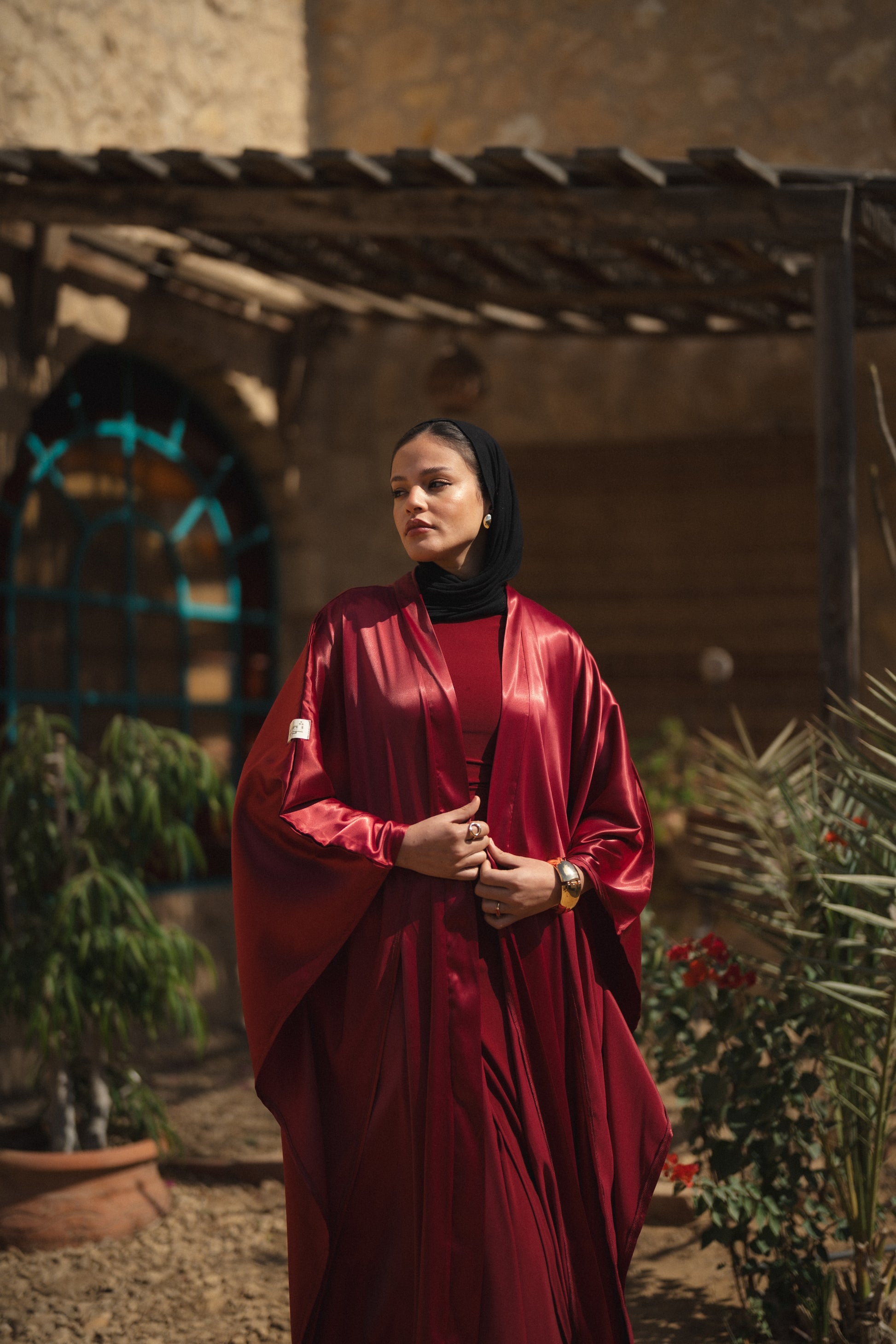 This satin maroon red open abaya is the perfect addition to any wardrobe. Made of high-quality material, it offers a luxurious look and comfortable feel. Its open design allows for versatile styling options, making it a versatile and elegant choice for any occasion. Elevate your style with this sophisticated abaya.